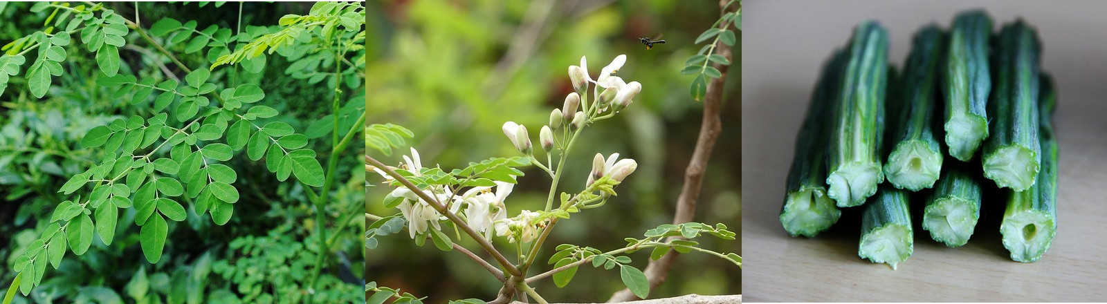 Drumstick Image by S V from Pixabay | Leaves / Plant Image by Iskandar Ab. Rashid from Pixabay | Blossom Image by Yaayaa Diallo from Pixabay | Tea Pot & Cup Image by dungthuyvunguyen from Pixabay