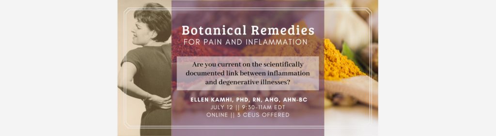 3 CEUs are offered for Massage Therapists, Dietitians, Nurses, and Midwives in the state of Florida for an additional $15 processing fee. https://www.holisticlivingschool.org/events/online-botanical-remedies-for-pain-2/ Current medical literature is documenting the link between inflammation and degenerative illnesses, including Arthritis, Alzheimer’s, Diabetes, Heart disease Learn More …